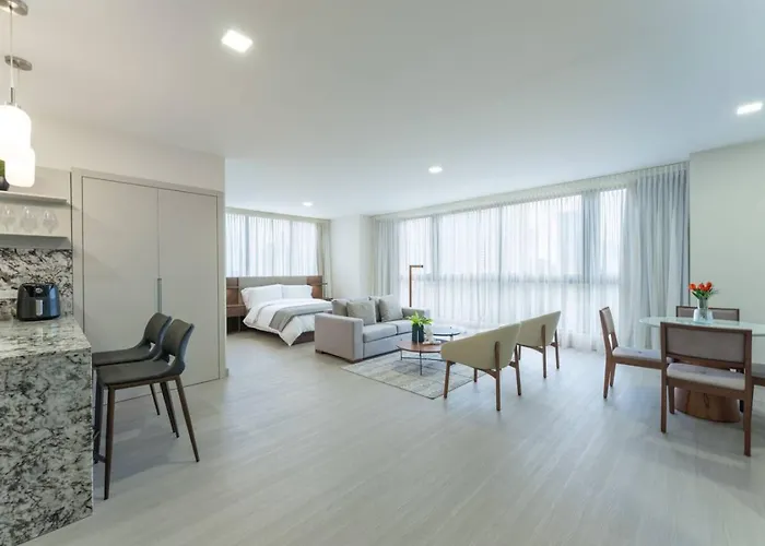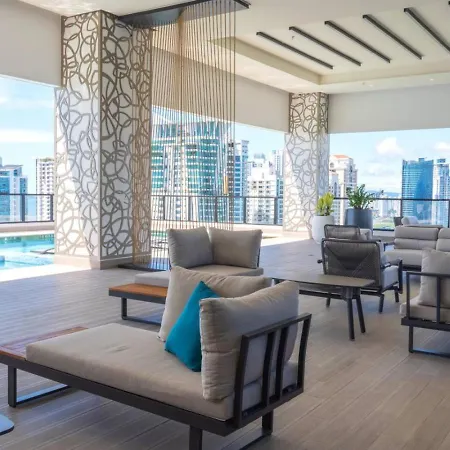 Die 2-Zimmer-Villa Deluxe Loft With City And Ocean View Panama Stadt befindet sich im Stadtviertel Costa del Este von Panama Stadt und bietet einen Swimmingpool, eine Sauna für zusätzliche Entspannung.